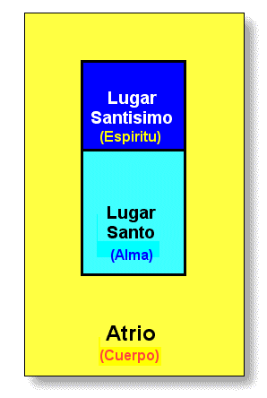 1Ts.5:23 "Todo vuestro ser, espíritu, alma y cuerpo". Los tres compartimentos del Tabernáculo representan en forma gráfica la trinidad del hombre.